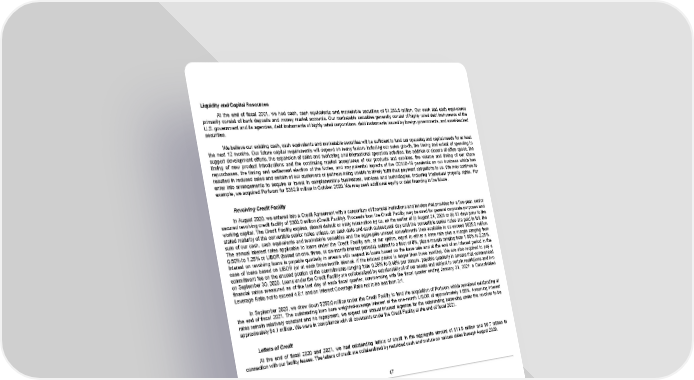 Liquidity and Capital Resources At the end of fiscal 2021, we had cash, cash equivalents and marketable securities of $1,253.5 million. Our cash and cash equivalents primarily consist of bank deposits and money market accounts. Our marketable securities generally consist of highly rated debt instruments of the U.S. government and its agencies, debt instruments of highly rated corporations, debt instruments issued by foreign governments, and asset-backed securities. We believe our existing cash, cash equivalents and marketable securities will be sufficient to fund our operating and capital needs for at least the next 12 months. Our future capital requirements will depend on many factors including our sales growth, the timing and extent of spending to support development efforts, the expansion of sales and marketing and international operation activities, the addition or closure of office space, the timing of new product introductions and the continuing market acceptance of our products and services, the volume and timing of our share repurchases, the timing and settlement election of the Notes, and any potential impacts of the COVID-19 pandemic on our business which has resulted in reduced sales and certain of our customers or partners being unable to timely fulfill their payment obligations to us. We may continue to enter into arrangements to acquire or invest in complementary businesses, services and technologies, including intellectual property rights. For example, we acquired Portworx for $352.9 million in October 2020. We may seek additional equity or debt financing in the future. Revolving Credit Facility In August 2020, we entered into a Credit Agreement with a consortium of financial institutions and lenders that provides for a five-year, senior secured revolving credit facility of $300.0 million (Credit Facility). Proceeds from the Credit Facility may be used for general corporate purposes and working capital. The Credit Facility expires, absent default or early termination by us, on the earlier of (i) August 24, 2025 or (ii) 91 days prior to the stated maturity of the convertible senior notes unless, on such date and each subsequent day until the convertible senior notes are paid in full, the sum of our cash, cash equivalents and marketable securities and the aggregate unused commitments then available to us exceed $625.0 million. The annual interest rates applicable to loans under the Credit Facility are, at our option, equal to either a base rate plus a margin ranging from 0.50% to 1.25% or LIBOR (based on one, three, or six-month interest periods), subject to a floor of 0%, plus a margin ranging from 1.50% to 2.25%. Interest on revolving loans is payable quarterly in arrears with respect to loans based on the base rate and at the end of an interest period in the case of loans based on LIBOR (or at each three-month interval, if the interest period is longer than three months). We are also required to pay a commitment fee on the unused portion of the commitments ranging from 0.25% to 0.40% per annum, payable quarterly in arrears that commenced on September 30, 2020. Loans under the Credit Facility are collateralized by substantially all of our assets and subject to certain restrictions and two financial ratios measured as of the last day of each fiscal quarter, commencing with the fiscal quarter ending January 31, 2021: a Consolidated Leverage Ratio not to exceed 4.5:1 and an Interest Coverage Ratio not to be less than 3:1. In September 2020, we drew down $250.0 million under the Credit Facility to fund the acquisition of Portworx which remained outstanding at the end of fiscal 2021. The outstanding loan bore weighted-average interest at the one-month LIBOR of approximately 1.65%. Assuming interest rates remain relatively constant and no repayment, we expect our annual interest expense for the outstanding borrowing under the revolver to be approximately $4.1 million. We were in compliance with all covenants under the Credit Facility at the end of fiscal 2021. Letters of Credit At the end of fiscal 2020 and 2021, we had outstanding letters of credit in the aggregate amount of $11.5 million and $6.7 million in connection with our facility leases. The letters of credit are collateralized by restricted cash and mature on various dates through August 2029. 47