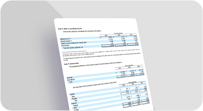 Note 14. Other Income (Expense), Net Other income (expense), net consists of the following (in thousands): Fiscal Year Ended 2019 2020 2021 (1) Interest income $ 18,013 $ 27,241 $ 17,442 (2) Interest expense (21,615) (27,897) (31,403) Foreign currency transactions (losses) gains (5,230) (3,396) 2,507 Other income 816 669 2,327 $ (8,016) $ (3,383) $ (9,127) Total other income (expense), net _________________________________ (1) Interest income includes interest income related to our cash, cash equivalents and marketable securities and non-cash interest income (expense) related to accretion (amortization) of the discount (premium) on marketable securities. (2) Interest expense includes non-cash interest expense related to amortization of the debt discount and debt issuance costs and the contractual interest expense related to our debt. Note 15. Income Taxes The geographical breakdown of loss before provision for income taxes is as follows (in thousands): Fiscal Year Ended 2019 2020 2021 Domestic $ (145,428) $ (212,672) $ (312,119) International (31,845) 18,006 41,959 Total $ (177,273) $ (194,666) $ (270,160) The components of the provision for income taxes are as follows (in thousands): Fiscal Year Ended 2019 2020 2021 Current: State $ 571 $ 538 $ 442 Foreign 4,214 7,774 8,006 Total $ 4,785 $ 8,312 $ 8,448 Deferred: Federal $ (2,776) $ (1,559) $ (218) State (920) (198) — Foreign — (234) 3,686 Total $ (3,696) $ (1,991) $ 3,468 Provision for income taxes $ 1,089 $ 6,321 $ 11,916 88