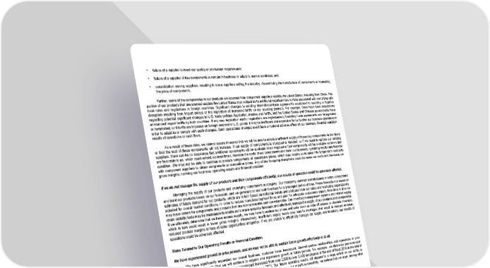 • failure of a supplier to meet our quality or production requirements; • failure of a supplier of key components to remain in business or adjust to market conditions; and • consolidation among suppliers, resulting in some suppliers exiting the industry, discontinuing the manufacture of components or increasing the price of components. Further, some of the components in our products are sourced from component suppliers outside the United States, including from China. The portion of our products that are sourced outside the United States may subject us to additional logistical risks or risks associated with complying with local rules and regulations in foreign countries. Significant changes to existing international trade agreements could lead to sourcing or logistics disruption resulting from import delays or the imposition of increased tariffs on our sourcing partners. For example, there have been discussions regarding potential significant changes to U.S. trade policies, legislation, treaties and tariffs, and the United States and Chinese governments have announced import tariffs by both countries. If any new legislation and/or regulations are implemented, if existing trade agreements are renegotiated or terminated, or if tariffs are imposed on foreign-sourced or U.S. goods, it may be inefficient and expensive for us to alter our business operations in order to adapt to or comply with such changes. Such operational changes could have a material adverse effect on our business, financial condition, results of operations or cash flows. As a result of these risks, we cannot assure investors that we will be able to obtain a sufficient supply of these key components in the future or that the cost of these components will not increase. If our supply of components is disrupted or delayed, or if we need to replace our existing suppliers, there can be no assurance that additional components will be available when required or that components will be available on terms that are favorable to us, which could extend our lead times, increase the costs of our components and harm our business, operating results and financial condition. We may not be able to continue to procure components at reasonable prices, which may require us to enter into longer-term contracts with component suppliers to obtain components at competitive prices. Any of the foregoing disruptions could increase our costs and decrease our gross margins, harming our business, operating results and financial condition. If we do not manage the supply of our products and their components efficiently, our results of operation could be adversely affected. Managing the supply of our products and underlying components is complex. Our third-party contract manufacturers procure components and build our products based on our forecasts, and we generally do not hold inventory for a prolonged period of time. These forecasts are based on estimates of future demand for our products, which are in turn based on historical trends and analyses from our sales and marketing organizations, adjusted for overall market conditions. In order to reduce manufacturing lead times and plan for adequate component supply, from time to time we may issue orders for components and products that are non-cancelable and non-returnable. Our inventory management systems and related supply chain visibility tools may be inadequate to enable us to make accurate forecasts and effectively manage the supply of our products and components. If we ultimately determine that we have excess supply, we may have to reduce our prices and write down or write off excess or obsolete inventory, which in turn could result in lower gross margins. Alternatively, insufficient supply levels may lead to shortages that result in delayed revenue, reduced product margins or loss of sales opportunities altogether. If we are unable to effectively manage our supply and inventory, our results of operations could be adversely affected. Risks Related to Our Operating Results or Financial Condition We have experienced growth in prior periods, and we may not be able to sustain future growth effectively or at all. We have significantly expanded our overall business, customer base, headcount, channel partner relationships and operations in prior periods, and we anticipate that we will continue to expand and experience growth in future periods. For example, we delivered year-over-year revenue growth of 2% for fiscal 2021 and our headcount increased from over 2,800 to over 3,400 employees at the end of fiscal 2019 to the end of fiscal 2020, and to over 3,800 employees at the end of fiscal 2021. Our future operating results will depend to a large extent on our ability to successfully sustain our growth our anticipated expansion. To sustain and manage our growth successfully, we believe that we must, among other things, effectively allocate resources and operate our business across a wide range of priorities. 18