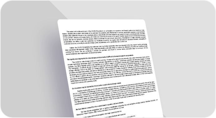 The extent and continued impact of the COVID-19 pandemic on our business and operational and financial performance depends on many factors, including the duration and spread of the outbreak; the availability and effectiveness of vaccines; government responses to and restrictions related to the pandemic; impact on our customers and our sales efforts and cycles; impact on our customer, industry or employee events; and effect on our partners, vendors and supply chains, all of which are uncertain and outside of our control. Potential negative impacts of these external factors include, but are not limited to, material adverse effects on demand for our products and services, including due to budget constraints and other uncertainties; our ability to gain new customers; our employee productivity; our supply chain and sales and distribution channels; collectability of customer accounts; our ability to execute strategic plans; impairments; and our profitability and cost structure. Further, the COVID-19 pandemic has enhanced, and may further exacerbate, other risks discussed in this “Risk Factors” section, particularly risks associated with demand, market trends, relationship building and sales efforts, as well as risks affected by the shift to our workforce largely working from home. We are continuing to monitor the pandemic and intend to continue taking appropriate steps in accordance with the recommendations and requirements of relevant authorities. The rapidly evolving market for data storage products makes it difficult to forecast demand for our products. The market for data storage products is rapidly evolving. Changes in the application requirements, data center infrastructure trends and the broader technology landscape result in evolving customer requirements for capacity, performance scalability and enterprise features of storage systems. Our future financial performance depends on our ability to adapt to competitive dynamics and emerging customer demands and trends. The introduction of all-flash storage products by incumbent vendors and changes or advances in alternative technologies or adoption of cloud storage offerings that do not utilize our storage platform could adversely affect the demand for our products. Offerings from large public cloud providers are expanding quickly and serve as alternatives to our products for a variety of customer workloads. Since these providers are known for developing storage systems internally, this trend reduces the demand for storage systems developed by original equipment manufacturers, such as us. It is difficult to predict with any precision customer adoption rates of new offerings, customer demand for our products or the future growth rate and size of our addressable market. A slowing or reduction in demand for our data storage products caused by technological challenges, alternative technologies and products or any other reason would result in a lower revenue growth rate or decreased revenue, either of which would negatively impact our business and operating results. Our business may be harmed by trends in the overall external storage market. Despite ongoing data growth, the external storage market in which we compete has not experienced substantial growth in the past few years due to a combination of technology transitions, increased storage efficiency, competitive pricing dynamics and changing economic and business environments. Customers are rethinking how they consume IT, increasing spending toward the public cloud, software as a service, hyperconverged and converged infrastructure and software-defined storage. Any failure on our part to accurately predict trends, successfully update our product offerings or to adapt our sales programs to meet changing customer demands could harm our business, operating results and financial condition. The future impact of these trends on both the short-term and long-term growth of the overall external storage market is uncertain. Reductions in the overall external storage market or the specific markets in which we compete would harm our business and operating results. We face intense competition from established companies and new entrants. We face intense competition from a number of established companies that sell competitive storage products, including Dell EMC, HP Enterprise, Hitachi Vantara, IBM, NetApp and others. Our competitors may have: • greater name and brand recognition and longer operating histories; • larger sales and marketing and customer support budgets and resources; • broader distribution and established relationships with distribution partners and customers; • the ability to bundle storage products with other products and services to address customers’ requirements; • greater resources to make acquisitions; 13