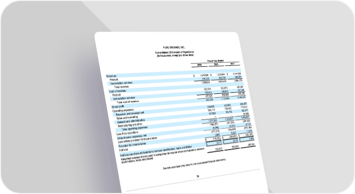 PURE STORAGE, INC. Consolidated Statements of Operations (in thousands, except per share data) Fiscal Year Ended 2019 2020 2021 Revenue: Product $ 1,075,586 $ 1,238,654 $ 1,144,098 Subscription services 284,238 404,786 540,081 Total revenue 1,359,824 1,643,440 1,684,179 Cost of revenue: Product 352,054 362,970 352,987 Subscription services 105,474 146,916 182,268 Total cost of revenue 457,528 509,886 535,255 Gross profit 902,296 1,133,554 1,148,924 Operating expenses: Research and development 349,936 433,662 480,467 Sales and marketing 584,111 728,022 716,014 General and administrative 137,506 163,153 182,477 Restructuring and other — — 30,999 Total operating expenses 1,071,553 1,324,837 1,409,957 Loss from operations (169,257) (191,283) (261,033) Other income (expense), net (8,016) (3,383) (9,127) Loss before provision for income taxes (177,273) (194,666) (270,160) Provision for income taxes 1,089 6,321 11,916 Net loss $ (178,362) $ (200,987) $ (282,076) $ (0.77) $ (0.79) $ (1.05) Net loss per share attributable to common stockholders, basic and diluted Weighted-average shares used in computing net loss per share attributable to common 232,042 252,820 267,824 stockholders, basic and diluted See the accompanying notes to the consolidated financial statements. 59