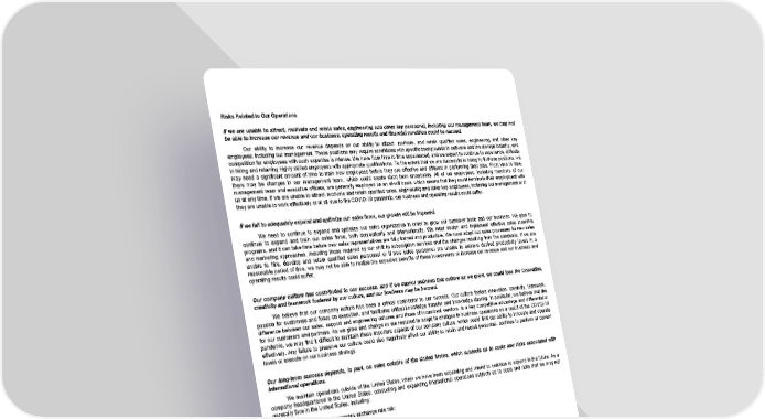Risks Related to Our Operations If we are unable to attract, motivate and retain sales, engineering and other key personnel, including our management team, we may not be able to increase our revenue and our business, operating results and financial condition could be harmed. Our ability to increase our revenue depends on our ability to attract, motivate, and retain qualified sales, engineering and other key employees, including our management. These positions may require candidates with specific backgrounds in software and the storage industry, and competition for employees with such expertise is intense. We have from time to time experienced, and we expect to continue to experience, difficulty in hiring and retaining highly skilled employees with appropriate qualifications. To the extent that we are successful in hiring to fill these positions, we may need a significant amount of time to train new employees before they are effective and efficient in performing their jobs. From time to time, there may be changes in our management team, which could create short term uncertainty. All of our employees, including members of our management team and executive officers, are generally employed on an at-will basis, which means that they could terminate their employment with us at any time. If we are unable to attract, motivate and retain qualified sales, engineering and other key employees, including our management or if they are unable to work effectively or at all due to the COVID-19 pandemic, our business and operating results could suffer. If we fail to adequately expand and optimize our sales force, our growth will be impeded. We need to continue to expand and optimize our sales organization in order to grow our customer base and our business. We plan to continue to expand and train our sales force, both domestically and internationally. We must design and implement effective sales incentive programs, and it can take time before new sales representatives are fully trained and productive. We must adapt our sales processes for new sales and marketing approaches, including those required by our shift to subscription services and the changes resulting from the pandemic. If we are unable to hire, develop and retain qualified sales personnel or if new sales personnel are unable to achieve desired productivity levels in a reasonable period of time, we may not be able to realize the expected benefits of these investments or increase our revenue and our business and operating results could suffer. Our company culture has contributed to our success, and if we cannot maintain this culture as we grow, we could lose the innovation, creativity and teamwork fostered by our culture, and our business may be harmed. We believe that our company culture has been a critical contributor to our success. Our culture fosters innovation, creativity, teamwork, passion for customers and focus on execution, and facilitates critical knowledge transfer and knowledge sharing. In particular, we believe that the difference between our sales, support and engineering cultures and those of incumbent vendors, is a key competitive advantage and differentiator for our customers and partners. As we grow and change or are required to adapt to changes in business operations as a result of the COVID-19 pandemic, we may find it difficult to maintain these important aspects of our company culture, which could limit our ability to innovate and operate effectively. Any failure to preserve our culture could also negatively affect our ability to retain and recruit personnel, continue to perform at current levels or execute on our business strategy. Our long-term success depends, in part, on sales outside of the United States, which subjects us to costs and risks associated with international operations. We maintain operations outside of the United States, which we have been expanding and intend to continue to expand in the future. As a company headquartered in the United States, conducting and expanding international operations subjects us to costs and risks that we may not generally face in the United States, including: • exposure to foreign currency exchange rate risk; • difficulties in collecting payments internationally; • managing and staffing international operations; • public health pandemics or epidemics, such as the COVID-19 pandemic; • establishing relationships with channel partners in international locations; • increased travel, infrastructure and legal compliance costs associated with international locations; 22