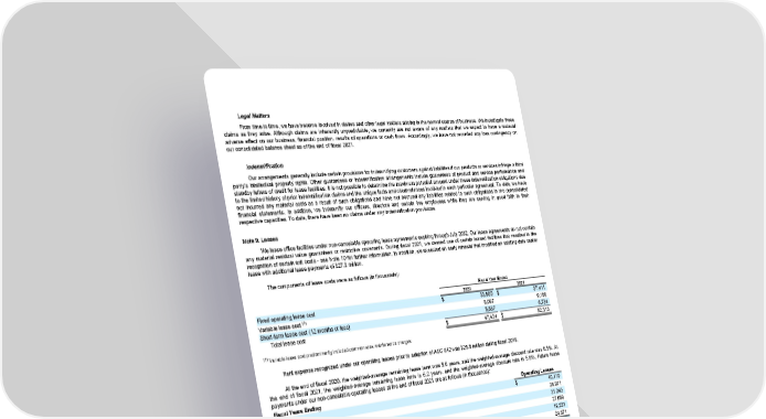 Legal Matters From time to time, we have become involved in claims and other legal matters arising in the normal course of business. We investigate these claims as they arise. Although claims are inherently unpredictable, we currently are not aware of any matters that we expect to have a material adverse effect on our business, financial position, results of operations or cash flows. Accordingly, we have not recorded any loss contingency on our consolidated balance sheet as of the end of fiscal 2021. Indemnification Our arrangements generally include certain provisions for indemnifying customers against liabilities if our products or services infringe a third party’s intellectual property rights. Other guarantees or indemnification arrangements include guarantees of product and service performance and standby letters of credit for lease facilities. It is not possible to determine the maximum potential amount under these indemnification obligations due to the limited history of prior indemnification claims and the unique facts and circumstances involved in each particular agreement. To date, we have not incurred any material costs as a result of such obligations and have not accrued any liabilities related to such obligations in the consolidated financial statements. In addition, we indemnify our officers, directors and certain key employees while they are serving in good faith in their respective capacities. To date, there have been no claims under any indemnification provisions. Note 9. Leases We lease office facilities under non-cancelable operating lease agreements expiring through July 2032. Our lease agreements do not contain any material residual value guarantees or restrictive covenants. During fiscal 2021, we ceased use of certain leased facilities that resulted in the recognition of certain exit costs - see Note 10 for further information. In addition, we executed an early renewal that modified an existing data center lease with additional lease payments of $27.3 million. The components of lease costs were as follows (in thousands): Fiscal Year Ended 2020 2021 Fixed operating lease cost $ 33,800 $ 37,411 (1) Variable lease cost 8,097 9,168 Short-term lease cost (12 months or less) 5,537 5,734 Total lease cost $ 47,434 $ 52,313 (1) Variable lease cost predominantly included common area maintenance charges. Rent expense recognized under our operating leases prior to adoption of ASC 842 was $25.6 million during fiscal 2019. At the end of fiscal 2020, the weighted-average remaining lease term was 5.6 years, and the weighted-average discount rate was 6.5%. At the end of fiscal 2021, the weighted-average remaining lease term is 5.2 years, and the weighted-average discount rate is 5.8%. Future lease payments under our non-cancelable operating leases at the end of fiscal 2021 are as follows (in thousands): Fiscal Years Ending Operating Leases 2022 $ 40,110 2023 36,971 2024 31,340 2025 27,059 2026 19,231 Thereafter 24,371 Total future lease payments $ 179,082 Less: imputed interest (26,490) Present value of lease liabilities $ 152,592 81