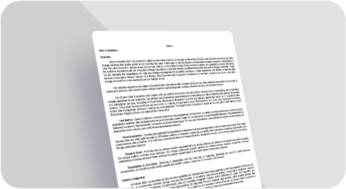 PART I Item 1. Business. Overview Data is foundational to our customers' digital transformation and we are focused on delivering innovative and disruptive technology and data storage solutions that enable customers to maximize the value of their data. In our first decade, we completely changed customers' expectations of what they should see from storage arrays and storage vendors, making flash storage widely available to enterprise organizations and revolutionizing the customer experience with our Evergreen Storage subscription model that radically simplified and reduced total cost of storage ownership. Today, we are changing the expectations for data and storage management by providing customers a cloud experience with flexible on-demand data services consumption through delivery of a Modern Data Experience that empowers organizations to run their operations as a true, automated, storage as-a-service model seamlessly across multiple clouds. Our solutions support a wide range of structured and unstructured data, at scale and across any data workloads on-premise, in the cloud, or hybrid environments, and include mission-critical production, test/development, analytics, disaster recovery, and backup/recovery. Our Modern Data Experience vision begins with our portfolio of products and subscription services that is transforming and modernizing storage operations for our customers. Our Modern Data Experience vision extends to an innovative and highly-integrated data platform of products and subscription services, consisting of Cloud Data Infrastructure (integrated hardware and software appliances which run in on-premise data centers), Cloud Data Services (software services which run natively in major public cloud infrastructures), and Cloud Data Management (software hosted data management services to manage our entire platform). The Modern Data Experience is based on four key pillars: Fast Matters, Cloud Everywhere, Simple is Smart, and Subscription to Innovation. Fast Matters - Speed is critical to customer experience and engagement, and therefore, we design our high-performance solutions to allow applications, analytics, and development to move and execute quickly in order for our customers to make impactful decisions. We redefine fast by delivering low-latency, high bandwidth, and maximum density technologies. For example, accelerating core applications enables rapid response and deployment which reduces costs while increasing enterprise resilience. Cloud Everywhere - Providing our customers the opportunity to transform their data management to a full or hybrid cloud model. This model reduces costs and adds agility through an API-defined platform, a consistent on-premise and public cloud experience, seamless data mobility and comprehensive data protection. This multi-cloud environment delivers increased flexibility, fast global recovery, and minimized application downtime through automated response. Simple is Smart - From day one, our storage solutions are designed to be simple, allowing our customers to reduce time spent managing the storage platform including issue resolution. Our storage dashboards present real-time and intuitive platform analytics; meanwhile, AI-based optimization proactively analyzes future workloads and global network issues to limit unforeseen infrastructure problems. Subscription to Innovation - Delivering a subscription with low total cost of ownership, eliminating the need for forklift hardware replacements, and providing customizable capacity and mobility, whether on-premise, in the cloud or hybrid cloud. Portworx Acquisition In October 2020, we expanded our data services capabilities for containerized, cloud-native applications with the acquisition of Portworx Inc. (Portworx), a privately-held container storage company that provides a Kubernetes data services platform. Cloud-native databases, analytics applications and artificial intelligence (AI) frameworks, such as Cassandra, MongoDB, Postgres, Kafka, Elasticsearch, Spark, and Tensorflow, are the tools upon which customers build their modern data pipelines. By integrating Portworx container data services, which includes storage, data protection, data security and disaster recovery/backup, with our data platforms, this acquisition further enhances our Modern Data Experience by expanding our support for these cloud-native applications on any infrastructure, on-premise or in the cloud environment at any scale. 5