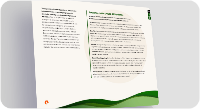 Throughout the COVID-19 pandemic, Pure created Response to the COVID-19 Pandemic heightened focus on ensuring employees felt physically, mentally, and physiologically safe and In January 2020, Pure brought together leaders from across the business supported. Prior to the pandemic, we partnered to form a cross-functional rapid response team to address COVID-19. with Lyra—an innovative mental health benefits Work-from-home: To support the transition to working from home, Pure provided stipends to build provider—to offer comprehensive mental health care out home offices with ergonomic equipment. In recognition of the change in work dynamics and for our employees. In response to the pandemic, preferences of our employees, we anticipate a hybrid working environment moving forward. we promoted the availability of Lyra and Konterra Benefits: We customized our benefit offerings with programs focused on managing stress and mental resources to our employees more widely. Through health. Pure ensures access to virtual mental health and coaching sessions to all employees. U.S. these services, Pure offers employees a suite of mental employees also have 24/7 access to a virtual care team through a vendor which focuses on delivering healthcare, including career coaching and cognitive COVID-19 testing, counseling, and family support. We also refreshed our death and permanent behavioral therapy. Pure also extended access to Lyra disability insurance to provide world-class coverage during the pandemic. to employees’ families, broadening the reach of these Parents: Throughout the pandemic, we held parent panels across our global regions designed to offer critical mental health care services and demonstrating support and best practices to our community of parents. Our panels were richly diverse, featuring our belief that wellness for all is worth the investment. single parent families, dual-income working parents, and parents with children of all ages. We also offered free resources, giving parents with children of any age, access to webinars, one-on-one coaching sessions and more. Essential working safety: We launched the Return to Office Playbook that outlined new safety and health protocols to keep our essential workers safe in our offices. The playbook also outlined various protocols in the event of a COVID-19 exposure to ensure an accurate chain of communications and next steps are taken in that specific office/region, as well as compliance with any local reporting regulations. Future of work: As we move forward in a post-COVID world, we will shift appropriate positions to a hybrid model where offices will offer more collaborative spaces. Working from home on some days each week will become part of the regular work environment.