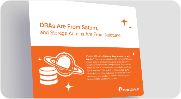 DBAs Are From Saturn, and Storage Admins Are From Neptune Why is it difficult for DBAs and Storage Admins to work together? From our conversations with numerous IT teams, we see patterns of miscommunication and misaligned goals between DBAs and Storage Admins. The common thread is a lack of understanding of the challenges faced by the other team. We wrote this eBook to help DBAs better understand the challenges of the Storage Admin, and to propose a solution to reduce conflicting goals between DBAs and Storage Admins.