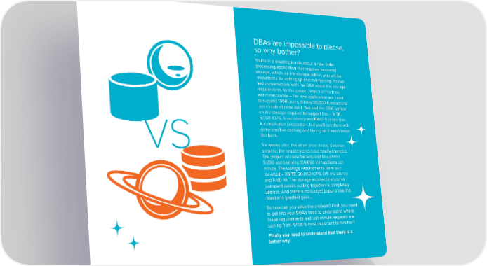 DBAs are impossible to please, so why bother? You’re in a meeting to talk about a new order processing application that requires back-end storage, which, as the storage admin, you will be responsible for setting up and maintaining. You’ve had conversations with the DBA about the storage requirements for the project, which at the time, were reasonable – the new application will need to support 1000 users, driving 20,000 transactions per minute at peak load. You and the DBA settled on the storage required to support this – 5 TB, 5,000 IOPS, 5 ms latency and RAID-5 protection. A complicated proposition, but you’ll get there with some creative caching and tiering so it won’t break the bank. vs Six weeks later, the other shoe drops. Surprise, surprise, the requirements have totally changed. The project will now be required to support 5,000 users driving 100,000 transactions per minute. The storage requirements have sky rocketed – 20 TB, 20,000 IOPS, 0.5 ms latency and RAID 10. The storage architecture you’ve just spent weeks putting together is completely useless. And there is no budget to purchase the latest and greatest gear… So how can you solve the problem? First, you need to get into your DBA’s head to understand where these requirements and last-minute requests are coming from. What is most important to him/her? Finally you need to understand that there is a better way.